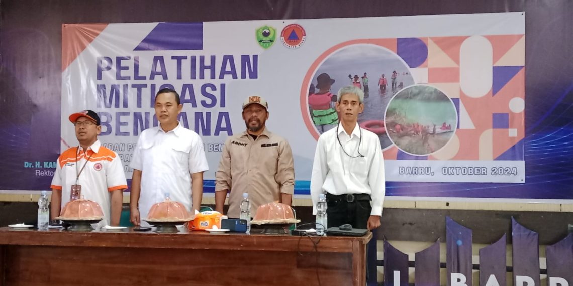 BARRU-Bertempat di Aula Institut Teknologi Bisnis dan Administrasi (ITBA ) Algazali Barru, Rabu (23/10) telah dilaksanakan Pelatihan Mitigasi Bencana yang merupakan kelanjutan dari pertemuan sebelumnya. Acara ini berlangsung selama dua hari yang dilaksanakan oleh Badan Penanggulangan Bencana Daerah (BPBD) Kabupaten Barru.