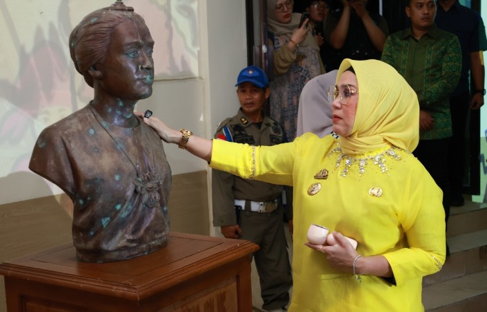 Dalam suasana yang hangat dan penuh kekhidmatan, Bupati Andi Ina melangkah memasuki ruang pamer, berhenti sejenak di depan patung dada Colliq Pujie.