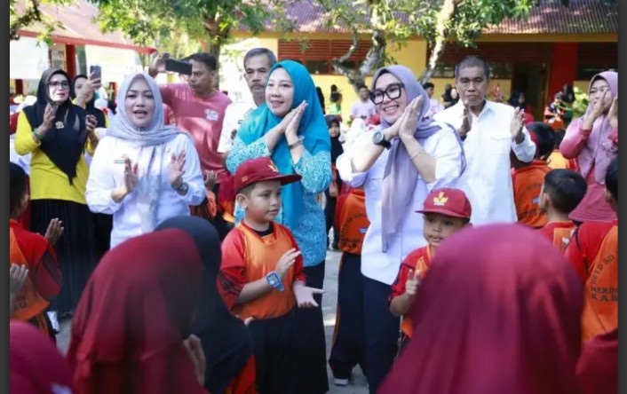 Kegiatan ini dihadiri langsung Bupati Barru, Andi Ina Kartika Sari, S.H., M.Si., yang tampil hangat, penuh kasih sayang, dan membaur akrab bersama 579 siswa SDN 1 Barru.