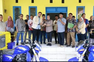 BARRU- Bupati Barru Andi Ina Kartika Sari, SH. M. Si menyerahkan dua unit sepeda motor pengangkut sampah bantuan Program Corporate Social Responsibility (CSR) Bank BRI BO Barru kepada Camat Barru ke Camat Barru Andi Mustafah Fieter, S. Sos yang berlangsung di Kantor Camat Barru, Jumat (12/12/2025).