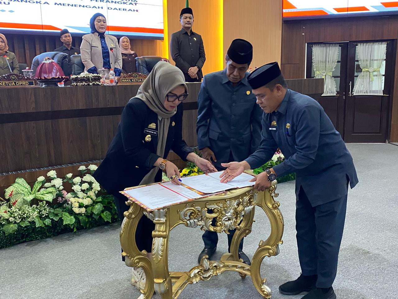 Penetapan ini ditandai dengan penandatanganan keputusan bersama oleh Bupati Barru, Andi Ina Kartika Sari, SH., M.Si., dan Ketua DPRD Barru, Drs. H. Syamsuddin Muhiddin, M.Si., serta disaksikan oleh para anggota dewan dan kepala OPD.