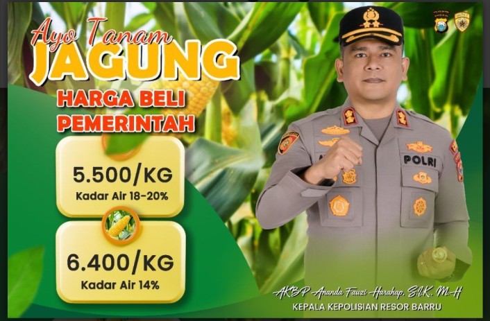 Kasi Humas Iptu Sulpakar, S.E saat dikonfirmasi awak media (Selasa, 29/07/2025) menyampaikan bahwa Bulog telah ditugaskan untuk menyerap hasil panen jagung petani. Bulog akan membeli jagung dengan kadar air 18-20% seharga 5.500 per kilogram. Sementara kadar air 14% ke bawah dihargai 6.400 rupiah.