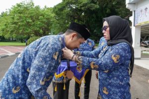 BARRU — Bupati Barru, Andi Ina Kartika Sari, S.H., M.Si., memberikan apresiasi langsung kepada seluruh petugas pelaksana dan peserta upacara peringatan HUT KORPRI ke-54 Tingkat Kabupaten Barru yang berlangsung di Halaman Kantor Bupati, Senin (1/12/2025).