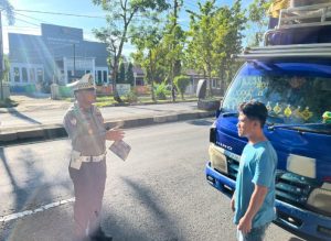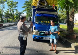 Selain itu, personel Sat Lantas turut memberikan penyuluhan kepada para sopir truk terkait larangan ODOL (Over Dimension Over Loading) guna mencegah potensi kecelakaan serta menjaga kelancaran arus kendaraan berat.