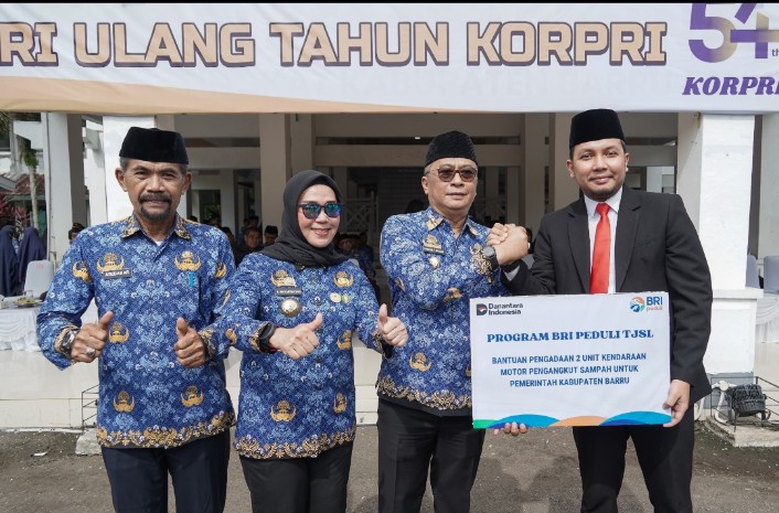 Bantuan tersebut diserahkan langsung oleh Pimpinan Cabang (Pinca) BRI Barru, David Richardo Gultom, dan diterima secara simbolis oleh Bupati Barru, Andi Ina Kartika Sari, S.H., M.Si., didampingi Wakil Bupati, Dr. Ir. Abustan A. Bintang, M.Si., seusai upacara peringatan HUT KORPRI di Halaman Kantor Bupati Barru.