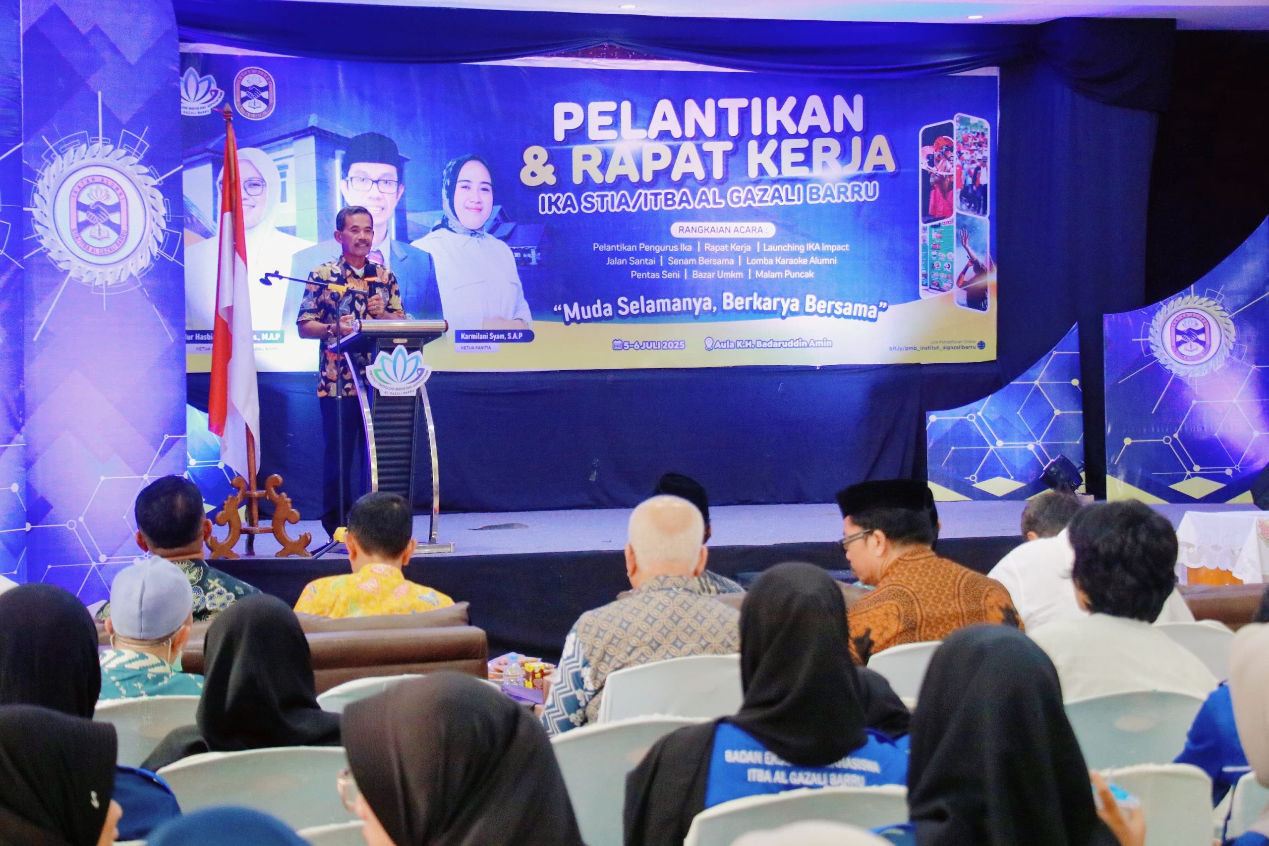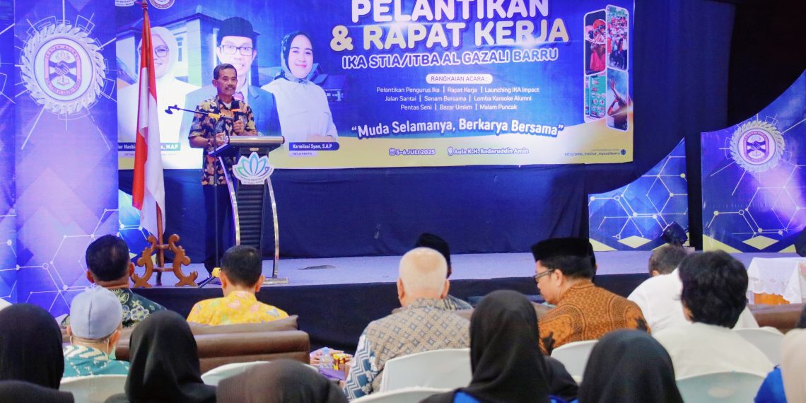 Barruterkini.com Barru. Meski hujan mengguyur wilayah Barru sejak subuh, semangat para alumni STIA/ITBA Al Gazali tak surut untuk menghadiri prosesi Pelantikan Pengurus Ikatan Alumni (IKA) STIA/ITBA Al Gazali Barru, yang digelar di Aula KH. Baddaruddin Amin, Kampus ITBA Al Gazali Barru, Jalan Jenderal Sudirman, Barru, Sabtu (5/7/2025)