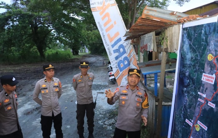 Barru – Polres Barru melaksanakan pengamanan Napak Tilas Perjuangan Pacekke Tahun 2025 yang berlangsung pada Sabtu (29/11/2025). Pengamanan diawali dengan pelaksanaan Tactical Wall Game (TWG) yang dipimpin oleh Kabag Ops Polres Barru, Kompol Andi Rahmat. TWG digelar sebagai langkah sinkronisasi tugas dan pola pengamanan seluruh personel di lapangan.