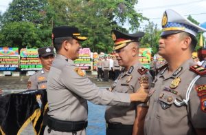 Pada kesempatan tersebut, sebanyak 9 perwira dan 35 bintara Porles Barru dinaikkan pangkatnya setingkat lebih tinggi.