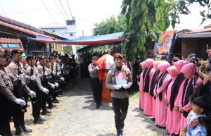 Sejumlah personel Polres Barru bersama Polres Parepare turut hadir memberikan penghormatan terakhir kepada almarhum yang dikenal berdedikasi dan berkepribadian hangat selama berdinas.