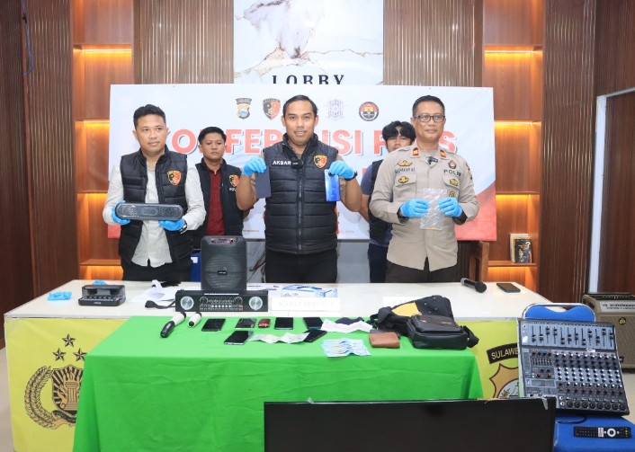 Dari TKP Markaz Cell, polisi mengamankan barang bukti berupa sembilan unit handphone berbagai merek, satu set speaker aktif, tiga unit mikrofon, dua buah dompet, satu tas, satu kalung emas seberat kurang lebih tiga gram beserta nota, uang tunai sebesar Rp350.000, satu unit sepeda motor Yamaha X-Ride beserta STNK dan kunci, serta satu buah helm. Sementara dari TKP Angkringan Nomor 01, diamankan barang bukti berupa satu unit televisi LED 43 inci merek Sharp, satu unit receiver musik, serta dua buah karpet.