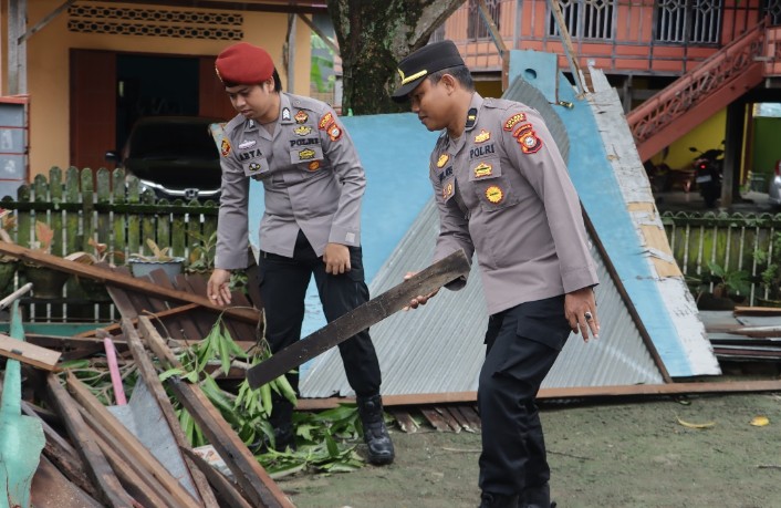 Kegiatan tersebut dilaksanakan oleh Personel Polres Barru sebagai bentuk respon cepat dalam membantu masyarakat pasca terjadinya bencana alam berupa angin kencang yang mengakibatkan kerusakan lingkungan dan mengganggu aktivitas warga.